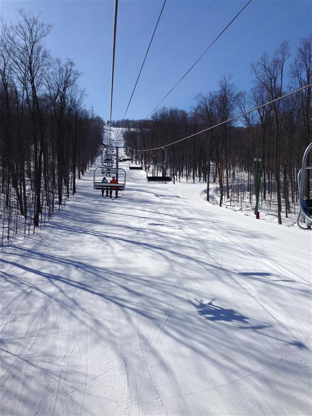 В Висконсине нет гор – так, пара невысоких холмов. Но какой горнолыжный курорт там есть! Шесть кресельных подъемников, два эскалатора для начинающих, трассы различной сложности, в том числе с трамплинами и кочками для могула. Прокат оборудования на день вместе со скипасом стоит 75 долларов, просто скипас на день – 15. Если сравнивать с нашими Малахово, Форино и даже калужской Кванью, хочется плакать.