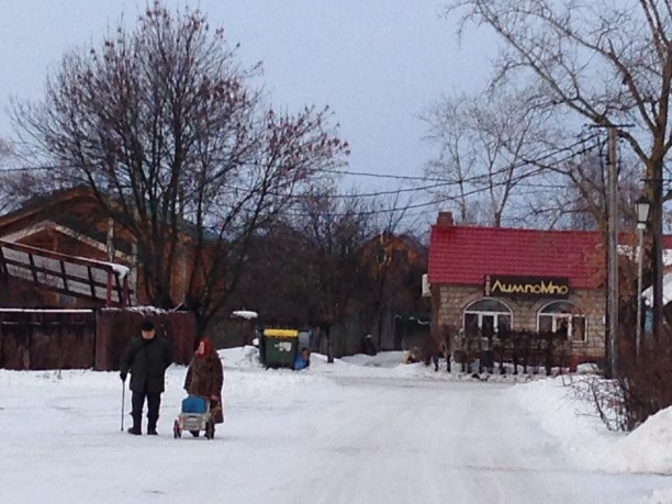 Улицы очень похожи на нашу ул. Металлистов. Хотя – нет, наша круче будет, когда отреставрируют. Тротуары не чистят, дороги ничем не поливают – везде первородный талый снег ( погодой повезло, было солнечно и тепло, около нуля).