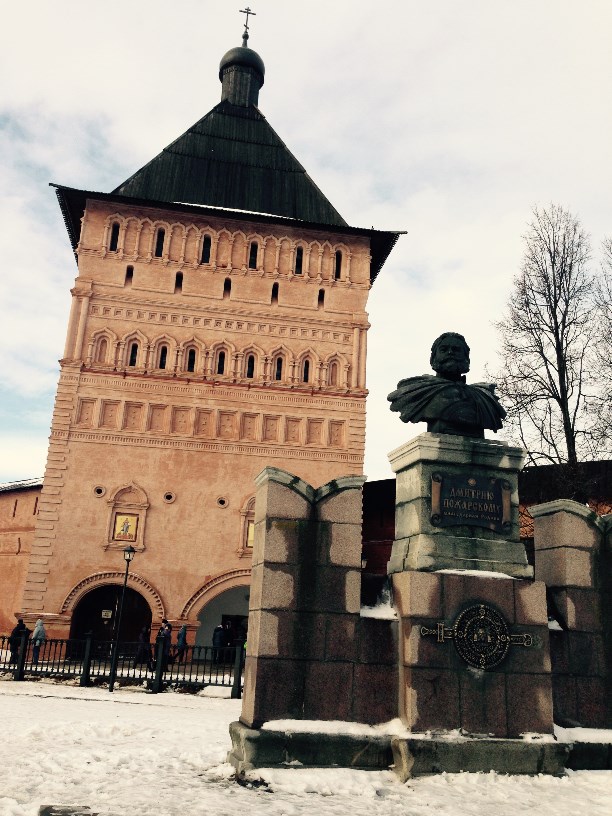 Памятник Дмитрию Пожарскому у входа в Свято-Евфимиев монастырь, где похоронены все Пожарские.