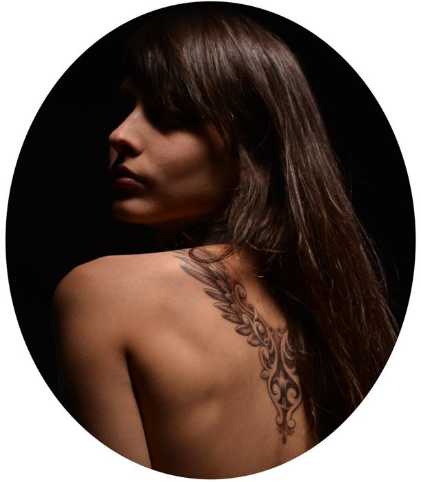 Он же потом подарил мне на день рождения кошечку на ноге, а через год набил крылышки на лопатках.
