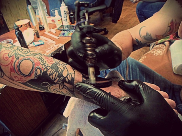 Первая татуха появилась у меня классе в третьем, кололи у друга канцелярской тушью и швейной иглой на пальце.