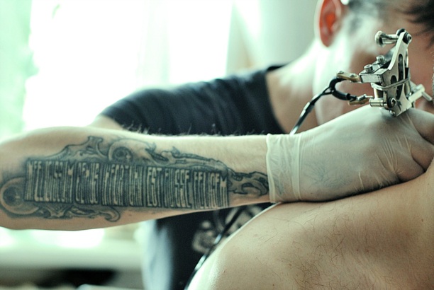 После того, как сделал своё первое серьёзное тату, надпись на правом предплечье с фоном,  биомеханика, глаза и т.д., левое предплечье, там тоже биомеханика, я загорелся идеей и собрал машинку. Следствием стал рукав.