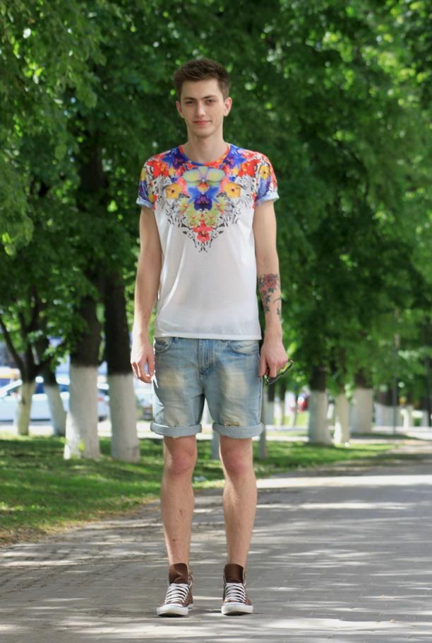 На Денисе: футболка Zara, шорты Pull and Bear, кеды Converse