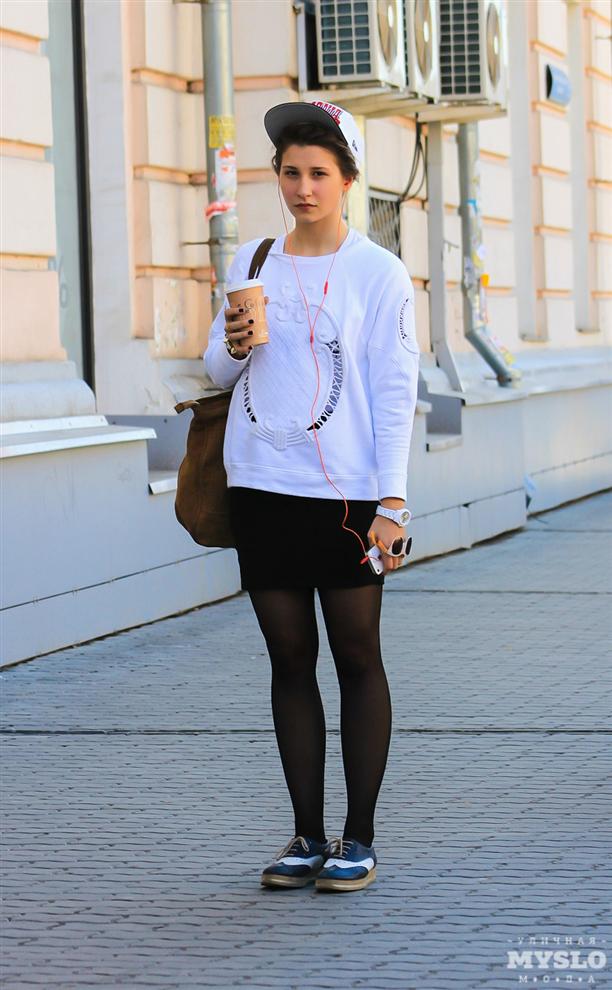 На Саше: Кепка California New Era, толстовка Zara, юбка New Yorker, ботинки из Италии, часы Parforis, сумка Mango, браслет Magic Bass, очки Accessorize