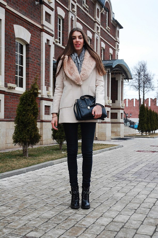 На Соне: пальто и джинсы Zara, сумка Greisy из Италии,
