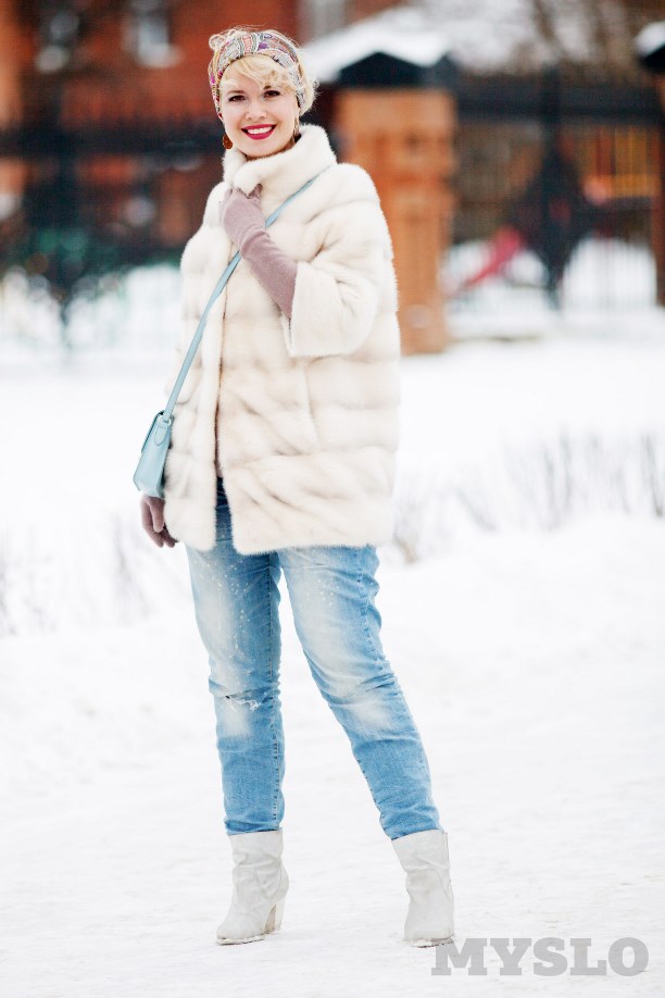 На Елене: Джинсы Mango, обувь Paolo Conte, «сумочку у дочки взяла», платок из натурального шелка Sabellino, серьги серебряные с позолотой из бутика «Тутанхамон», шуба норковая «Снежная Королева», часы — Tag Heuer Grand Carrera Calibre 17.