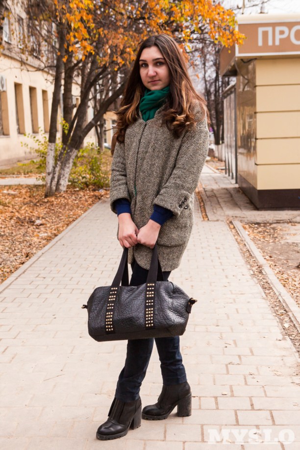 На Самире: сумка Topshop, пальто Met, шарф купила в ТЦ «Парадиз», ботильоны Ash, брюки Massimo Dutti, свитер Lacoste.