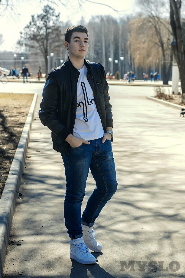 На Саше: джинсы и куртка Zara, футболка BEssARION, кроссовки Nike Air Force, часы CASIO