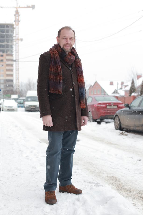 На Александре: пальто Zara Men, брюки Kanzler, обувь Carlo Pazolini, шарф Nicolas & Mark.