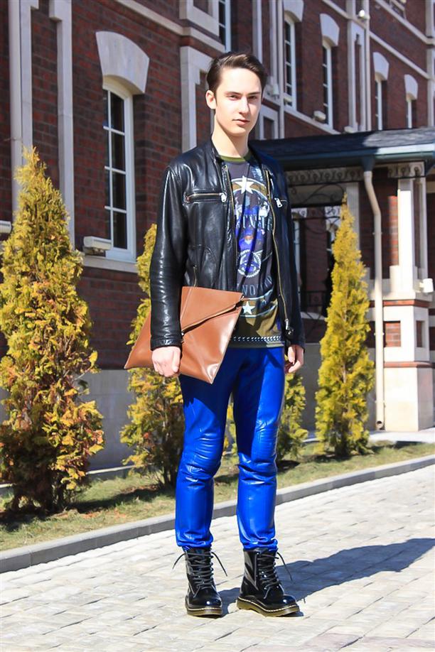 На Никите: Куртка Diesel, штаны сшиты по моему эскизу, ботинки Dr Martens, майка Givenchy, сумка No name, кольцо Alexander McQueen, браслеты