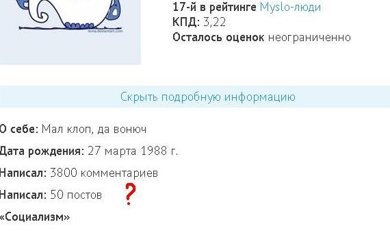 Возможно ли из профиля, там, где указывается количество накаляканных постов, еще и реализовать ссылки или переход к этим постам? Выпадающим списком или еще как... Я понимаю, что есть поиск по сайту. Но вот пример: я провела почти час в попытке восстановить в памяти название статьи, в которой был отчет о встрече портальцев и не смогла(поиск на мои тщетные попытки выдавал что угодно, кроме того, что было надо), пролистала НЖ, Курилку и Один день, пока не нашла искомое. А если бы я сразу зашла к Грину-пост нашелся бы сразу.