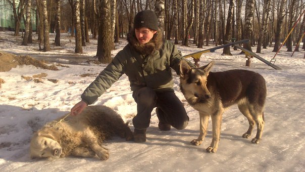 26 февраля в Белоусовском парке подобрали двух собак- молодая сука восточноевропейской овчарки (возраст - около 1 года) и кобель ретривера (возраст - около 5 лет), в ослабленном состоянии.