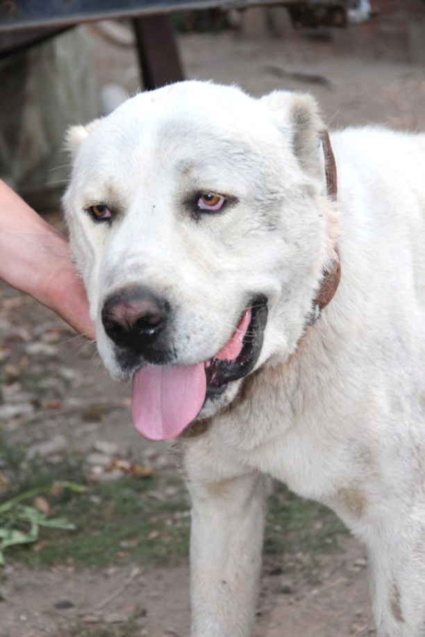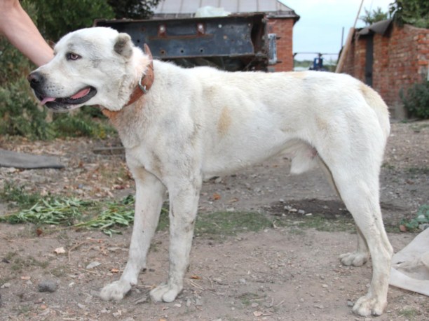 Собаке около 5 лет, пришел сам в 4 утра к мужчине, который оказался большим любителем собак и просто очень хорошим человеком. Несмотря на то, что у мужчины уже есть такса и кане-корсо, он оставил прибившегося алабая временно у себя.