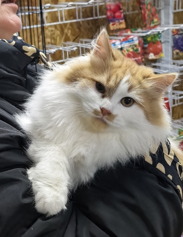 Посмотрите какая красавица распушилась этой зимой. Кошечке около пяти месяцев. Ласковая, ручная, дружит с сородичами и идеально умеет пользоваться лотком.