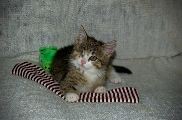 Добрый и отзывчивый котенок по имени Пират очень ждет человека, который полюбит его всем сердцем, несмотря на маленький "недостаток". У Пирата только один глаз. Малыш очень красивый и забавный, вызывающий умиление и улыбку.