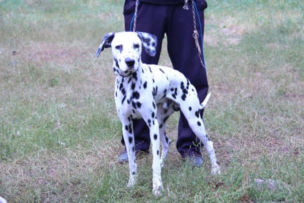 Этого далматина привели в центр «Любимец» в середине августа мужчина с мальчиком. Сказали, что нашли его привязанным к дереву в районе ул. Доктора Гумилевской или Столетова. Обещали помочь в его содержании и внести на следующий день средства для этого. Больше они не появлялись и пес так и остался без куратора. Далматин молодой, адекватный и общительный.
