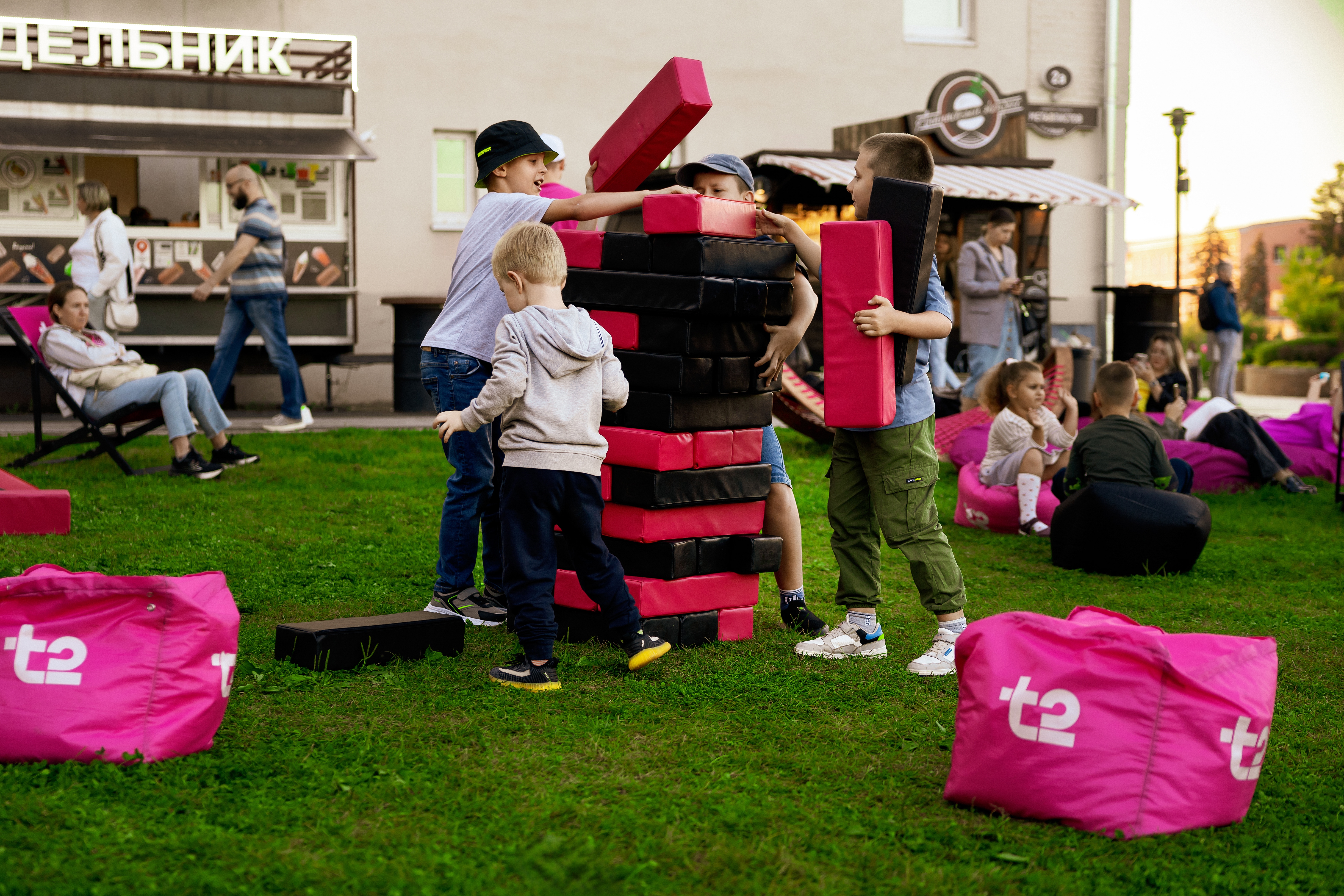 Настоящим хитом фестиваля стала лаундж-зона от T2. Здесь можно было отдохнуть на шезлонгах и почиллить в интернете. А для любителей активностей работали зоны для игры в корнхолл и гигантскую дженгу, где кипели нешуточные страсти.
