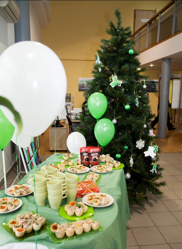 Также была организована зона фуршета, украшением которого стал прекрасный огромный торт с белыми сахарными снежинками и логотипом ŠKODA.