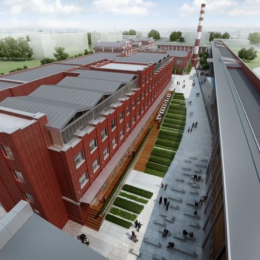 - Здания LikёrkaLoft образуют внутренний двор с обустроенной зоной развлечений для детей, создающий ощущение защищенности, несмотря на то, что они находятся в самом центре города.