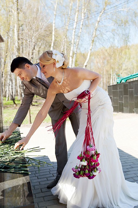 Тула – город-герой, и каждая пара молодоженов чтит память героев-защитников Отечества. После церемонии бракосочетания в парке Радмила и Роман отправились в аллею Славы на возложение цветов