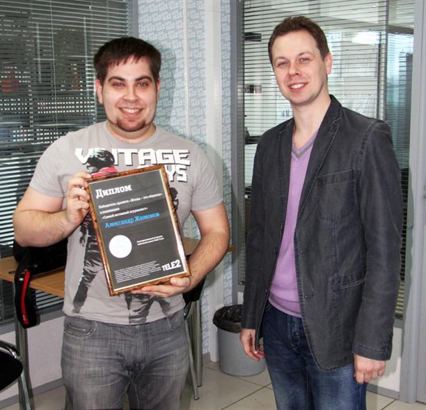 В награду за свою активную деятельность Александр получил памятный диплом и полезные сувениры, которые ему вручил Анатолий Струков, коммерческий директор макрорегиона «Центр» Tele2 Россия.