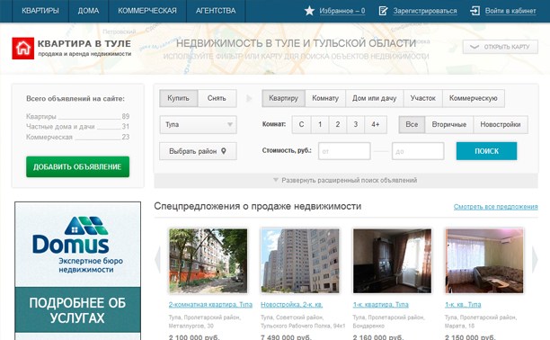 Портал «Квартира-в-Туле.ру» представляет собой большой каталог объявлений по продаже и аренде недвижимости в Туле и Тульской области. Целью создания этого проекта является объединение всех участников рынка недвижимости нашего региона на одном портале.