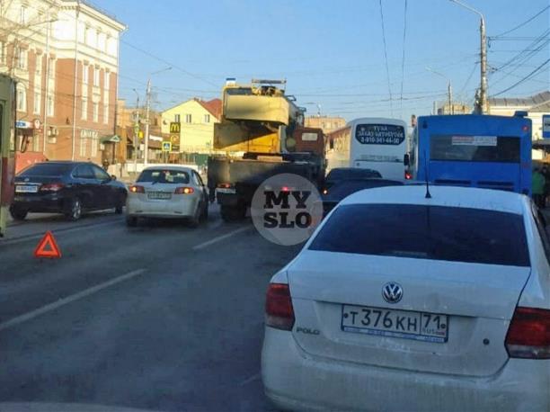 Утром 17 ноября неподалеку от пересечения улиц Октябрьской и Арсенальной в Туле произошло ДТП с участием автокрана и трех легковых автомобилей.