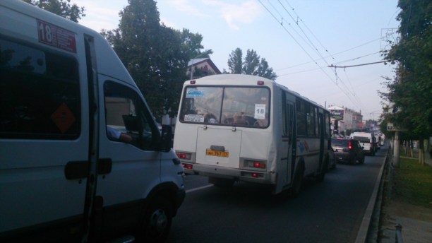 С 18.00 движение по проспекту Ленина буквально замерло: чтобы преодолеть расстояние от ост. «Улица Первомайская» до улицы Каминского, горожанам пришлось стоять в пробке почти час!