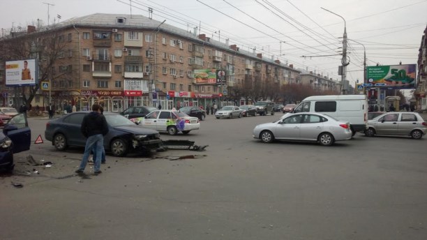 Как сообщает народный журналист Myslo Алексей Зайчиков, авария произошла в пятницу 31 октября примерно в 11.40. На пересечении улицы Фрунзе и Красноармейского проспекта столкнулись две легковушки – «Киа» и «Фольксваген Поло».
