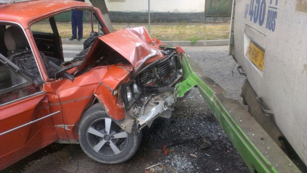 По предварительной версии, водитель ВАЗ-2106 въехал в заднюю часть стоящего на остановке автобуса, следовавшего по маршруту №1.