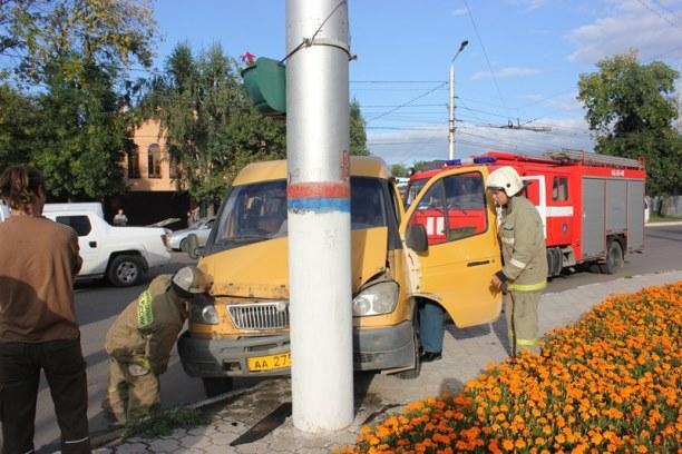 Водитель "Газели" не справился с управлением и врезался в столб. Во время аварии в салоне маршрутного такси находились пять человек.