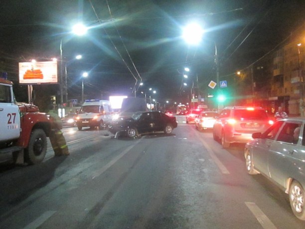 В этот момент по проспекту в сторону "белого дома" неслись два легковых автомобиля - "Саманд" и "Тойота". По словам очевидцев, вторая иномарка не дала съехать в правую полосу первой, в результате чего "Саманд" на полном ходу въехал в Мерседес, который, в свою очередь, подтолкнул Газель.