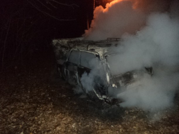 Огонь удалось погасить через 10 минут, машина полностью сгорела.