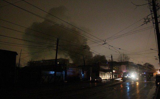 Около 0.00 7 января на ул. Оборонной в Туле загорелся двухэтажный дом, в котором располагалось несколько магазинов. К моменту приезда пожарных пристройка к зданию уже горела открытым пламенем и огонь перекинулся на крышу здания.