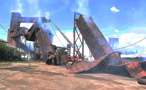 Огонь полностью уничтожил 2 склада для зерна. Примерная сумма ущерба – около одного миллиона рублей.