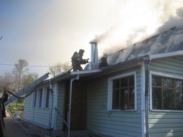 В 7.50 в поселке Новомедвенском, по адресу ул. Ванникова 27, загорелся жилой дом. На вызов были направлены пять пожарных расчетов.