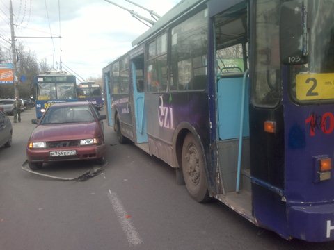 Движение парализовано из-за того, что нет возможности проезда для троллейбусов.