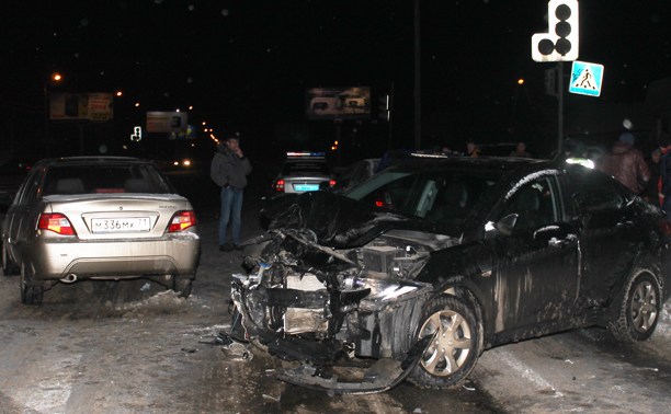 В начале одиннадцатого вечера в районе пересечения ул. Кутузова и ул. Вильямса в Туле произошло серьезное ДТП с участием сразу трех машин: Chevrolet, Hyundai Solaris и Daewoo Nexia.