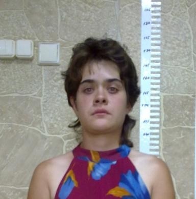 Её приметы: на вид 25 лет, рост 165 см, плотного телосложения, волосы чёрные, носит короткую стрижку, глаза зелёные, нос курносый, передние верхние зубы редкие.