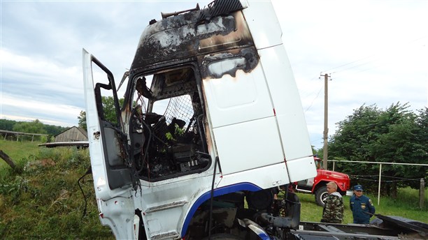 Пожарным удалось справиться с огнём в считаные минуты, однако кабина тягача успела полностью выгореть.