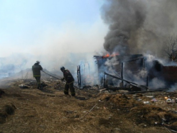 Днем 19 апреля загорелись кирпичные сараи в деревне Шкилевка. На место выехали две машины спасателей.