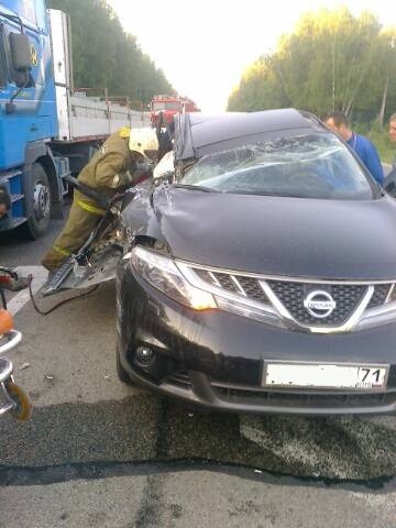 В 6.09 на пересечении трассы Москва-Крым и Одоевского шоссе не разъехались "Ниссан-Мурано" и фура "МАН".