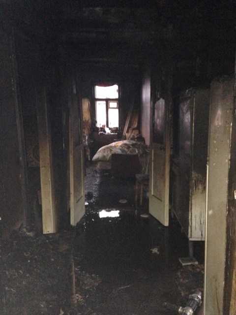 Судя по всему, пожар произошел в ванной комнате - она полностью выгорела, а также закоптились стены и потолок в коридоре. Причина пожара устанавливается.