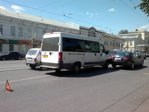 По сообщению корреспондента Myslo автомобиль "Шевроле" и маршруное такси 16/10 столкнулись прямо напротив трамвайной остановки "улица Советская".