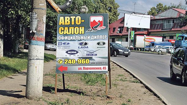Автосалон рекламирует незаконная, скорее всего, рекламная конструкция с ошибками («дилер»)