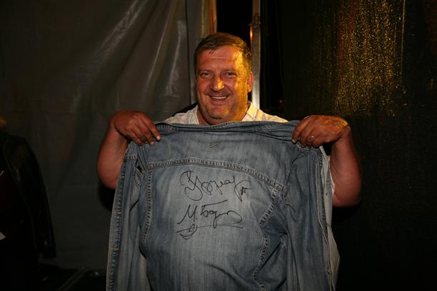 Правда, певец расписался не на его груди, а на куртке-джинсовке: