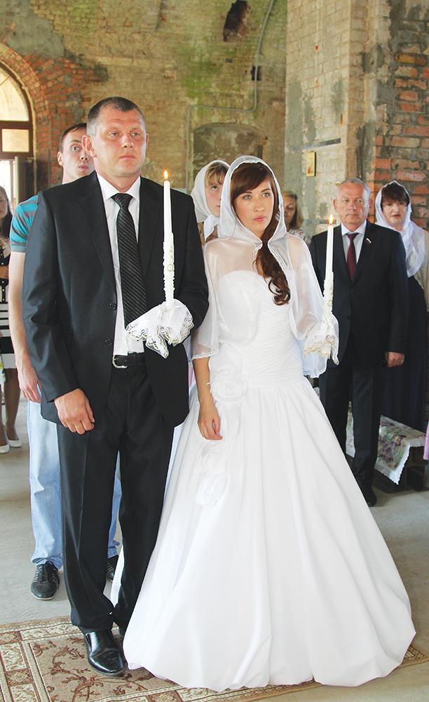 – То, что я буду венчаться именно в этом храме, мне приснилось шесть лет назад, – рассказывает счастливая Екатерина. – Тогда я еще была замужем за другим человеком, но счастья не было... Церковь эту я помню с детства. Мы приезжали сюда на кладбище, где похоронены родные, и лазили по руинам. Так вот во сне я четко видела, что венчаюсь с человеком выше меня ростом в этом храме, а у него – голубые купола и стены без икон.