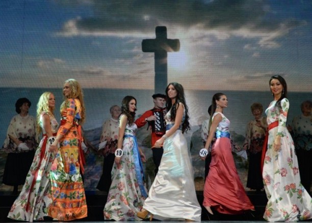 - 2 ноября нас поселили в шикарном подмосковном отеле. Тренажерный зал, пять видов бассейнов, различные сауны и spa-процедуры. Первые несколько дней мы привыкали к обстановке: проходили различные спортивные мероприятия, дефиле, знакомились друг с другом. А потом началось...))) Приехала наш режиссер-постановщик, и с этого момента пошли усиленные репетиции. Конкурс проходил под лозунгом «Россия – любовь моя!» и включал в себя пять выходов. Первый - в вечерних платьях и представление участниц. Остальные разделялись по четырем сторонам света: Восток - выход в национальных бурятских костюмах, Юг - в купальниках, символизирующих Олимпиаду в Сочи; Запад - в форме морского флота, Север - русские костюмы с городецкой росписью.