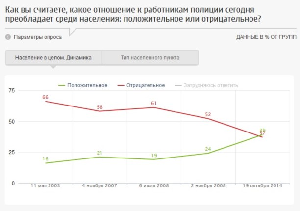 «Большинство россиян положительно относятся к полиции, доверяют полицейским. Больше половины обратились бы в полицию, если бы у них, например, украли кошелёк, при том что в 2008 году ситуация была иной: тогда сказали, что написали бы заявление о пропаже, лишь треть опрошенных. Тем не менее среди тех, кто обращался в полицию, недовольных результатом этого обращения больше, чем довольных», — подытожили в ФОМ.