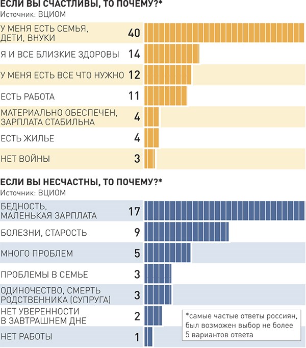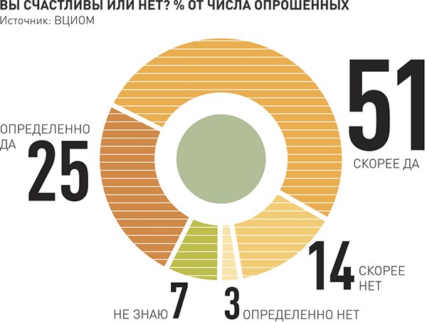 По сравнению с результатами пятнадцатилетней давности, изменения разительные: тогда абсолютно счастливым ощущал себя лишь каждый двадцатый респондент (5%), судьба все-таки улыбалась лишь 44%. Несчастливы были 27%.